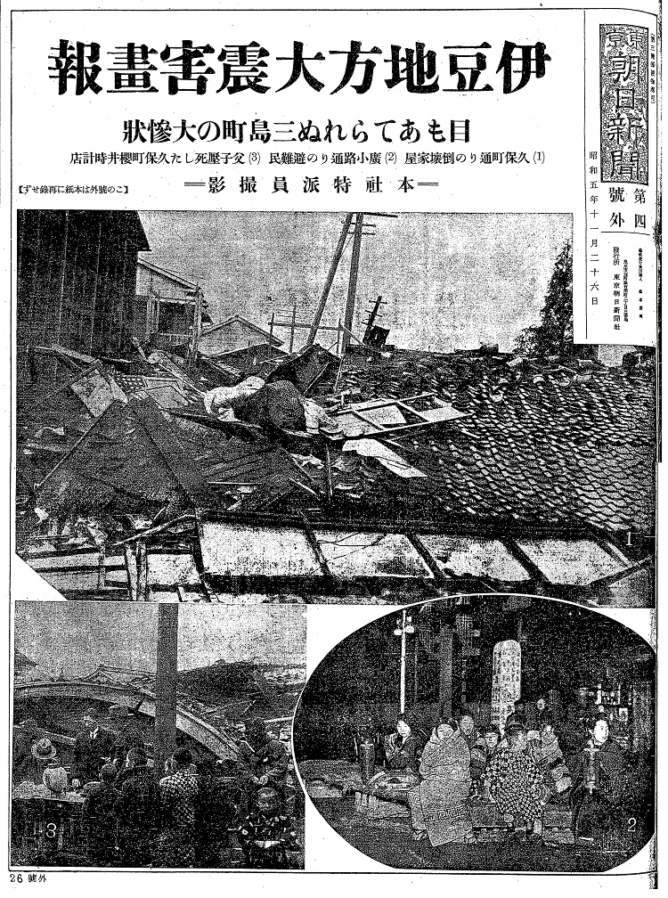 [1930_11_26_02]伊豆地方大震害画報 目もあてられぬ三島町の大惨状(東京朝日新聞 号外1930年11月26日)