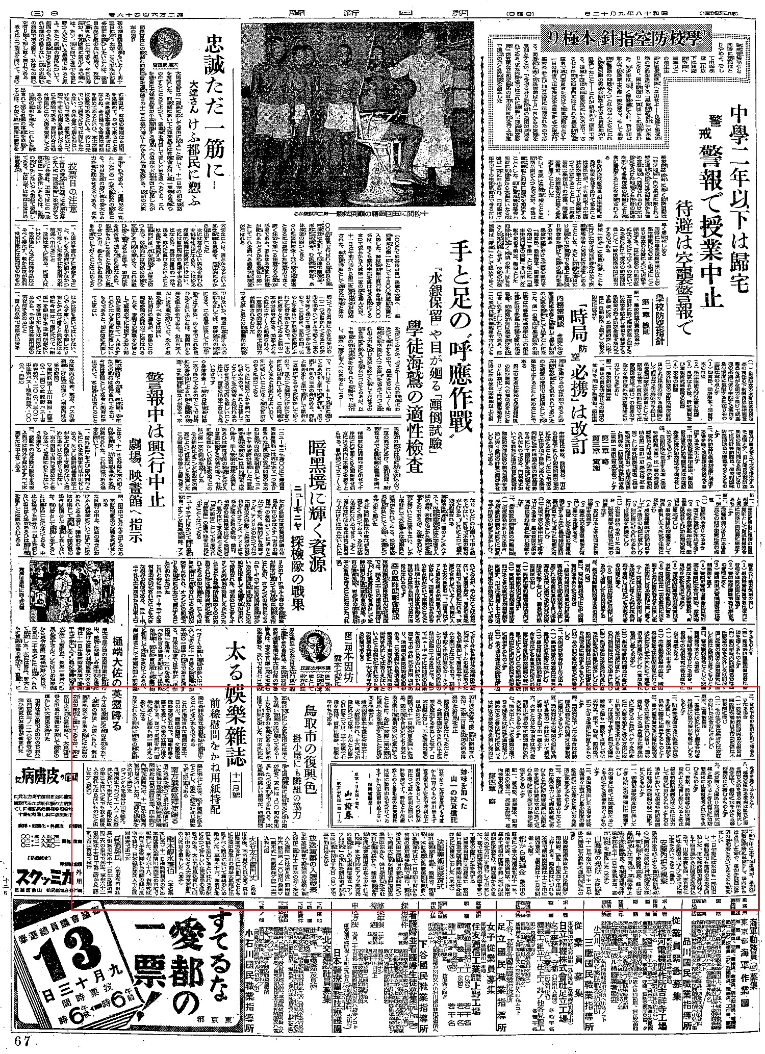 | [1943_09_12_01]鳥取市の復興色 掛小屋にも隣組の協力(東京朝日新聞1943年9月12日) |