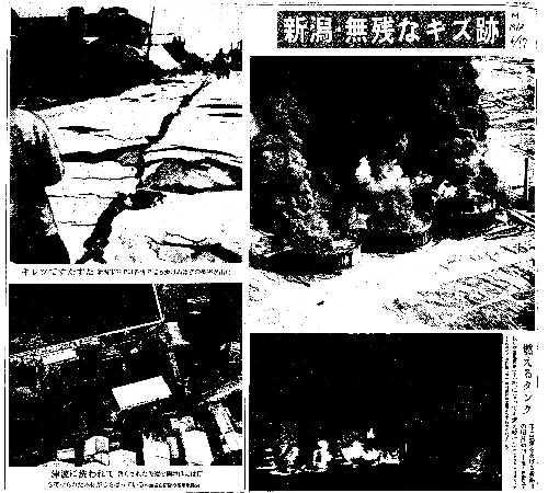 [1964_06_17_02]新潟・無残なキズ跡 燃えるタンク キレツでずたずた 津波に洗われて(毎日新聞1964年6月17日)