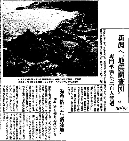 | [1964_06_21_01]新潟へ”地震調査団” 専門学者ら300人派遣 海藻枯れた”新陸地” 粟島 港を使えぬ漁民たち(毎日新聞1964年6月21日) |