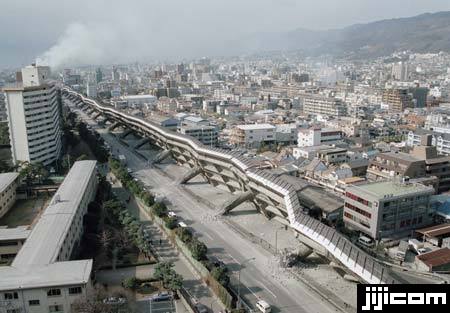 波打つように倒壊した阪神高速神戸線