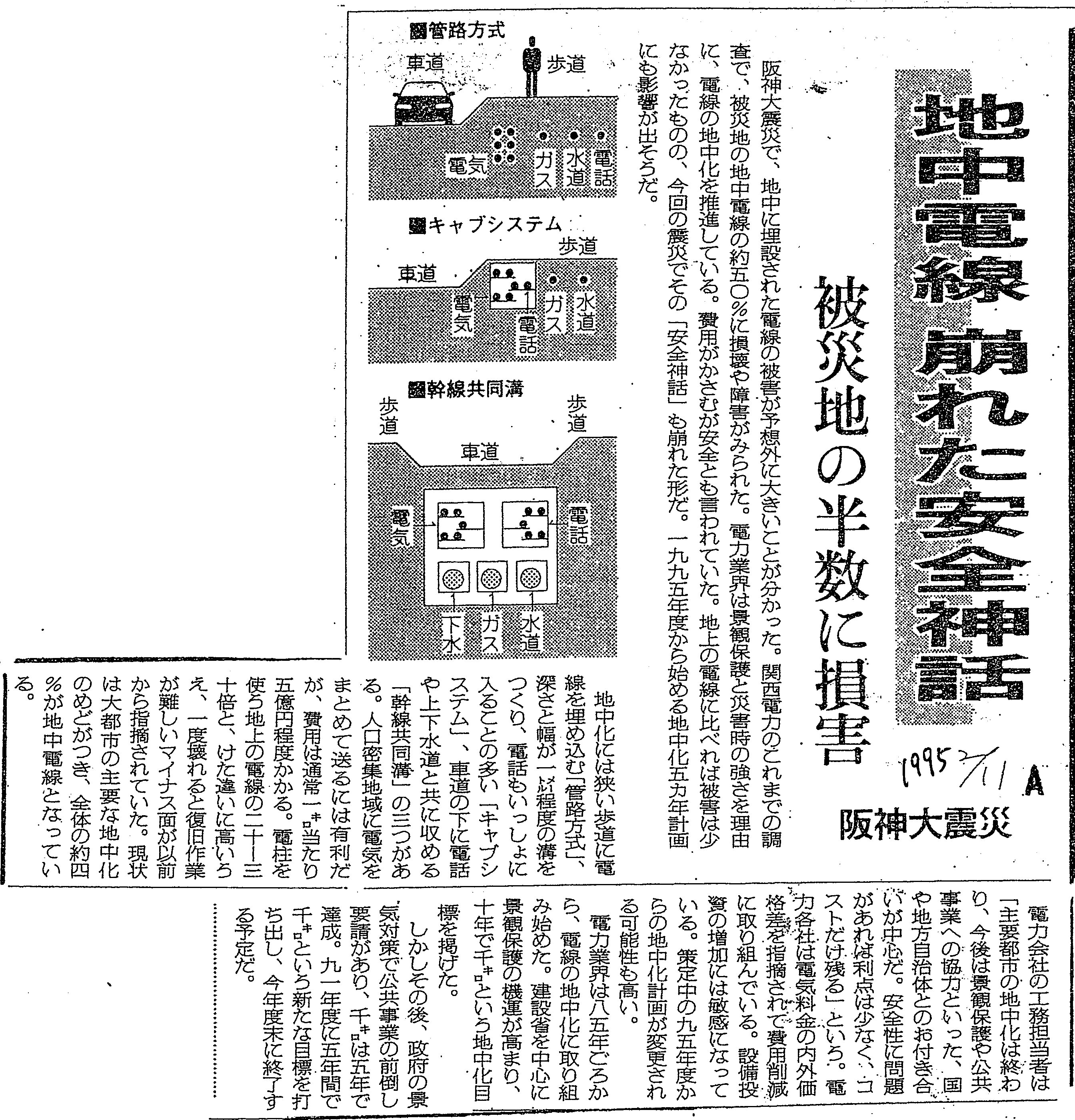 [1995_02_11_01]地中電線 崩れた安全神話 被災地の半数に損害 阪神大震災(朝日新聞1995年2月11日)
