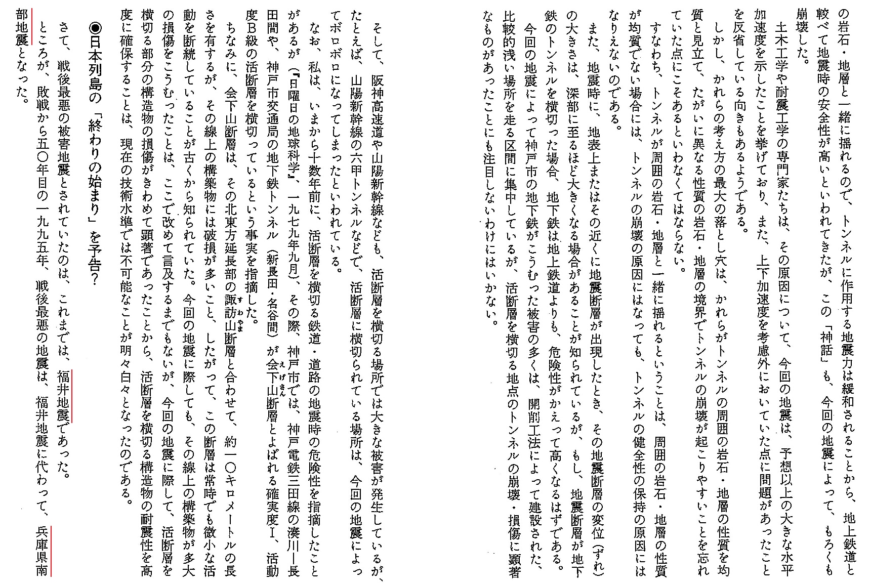 [1995_02_22_02]平成七年兵庫県南部地震が残した教訓 PAGE 278-279(検証・危険列島 新版 (生越忠)1995年2月22日)