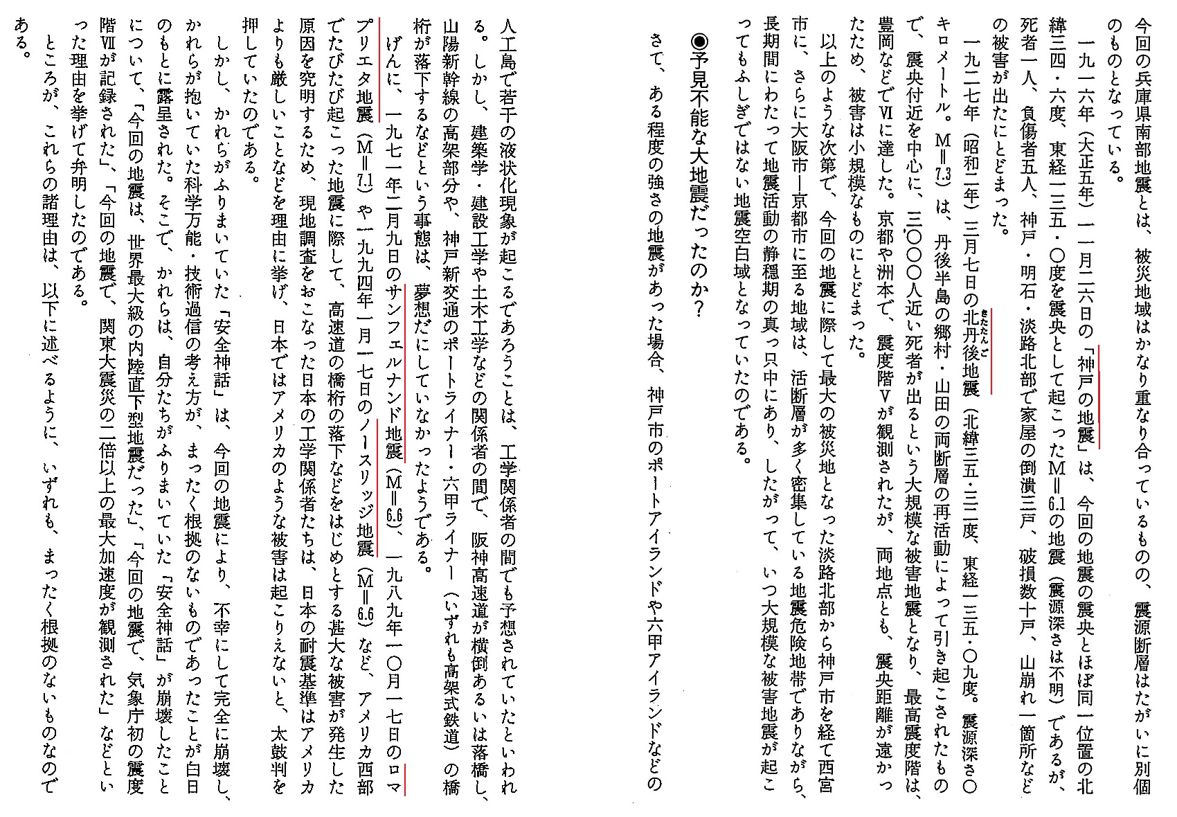 [1995_02_22_08]平成七年兵庫県南部地震が残した教訓 PAGE 266-267(検証・危険列島 新版 (生越忠)1995年2月22日)