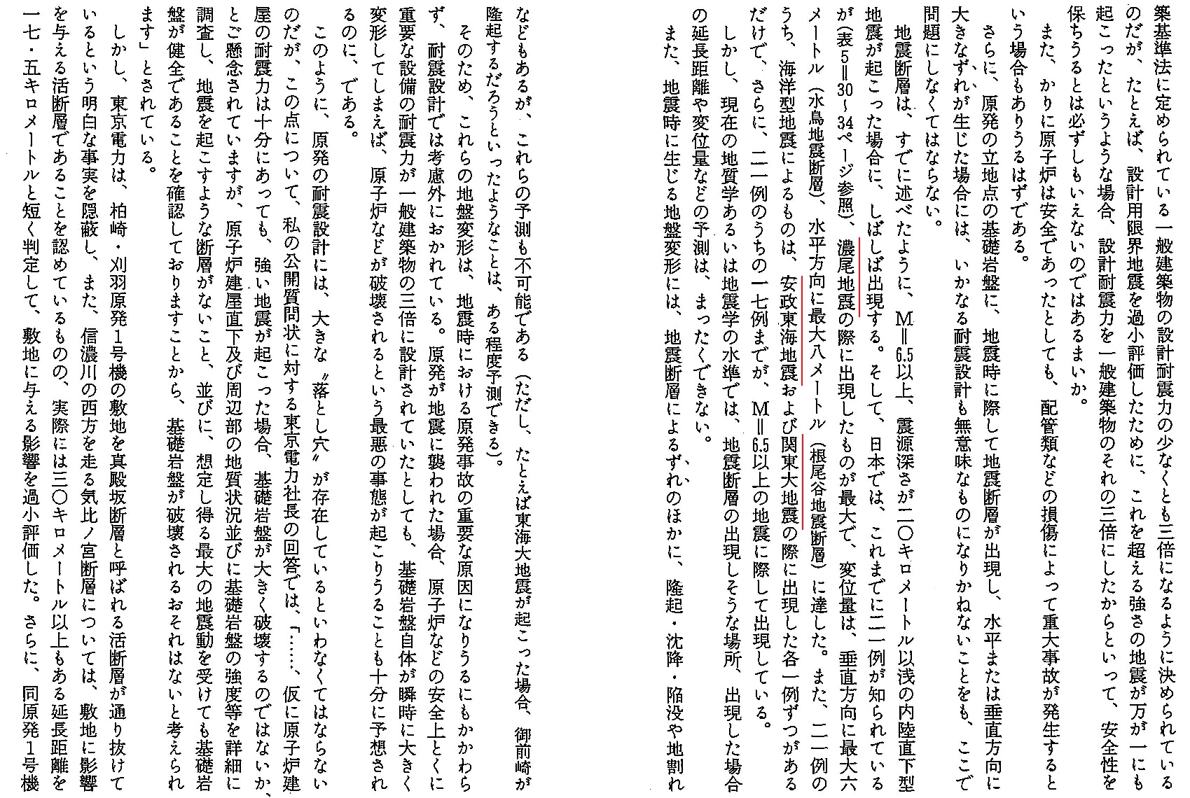 しかし、現在の地質学あるいは地震学の水準では、地震断層の出現しそうな場所、出現した場合の延長距離や変位量などの予測は、まったくできない。 |
