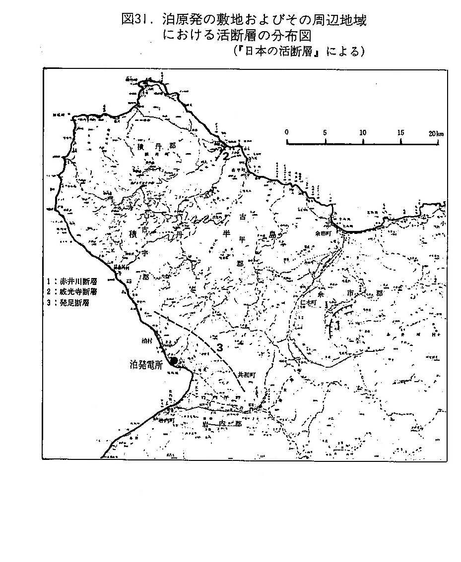 | 【図31】泊原発の敷地およびその周辺地域における活断層の分布図(『日本の活断層』による) ※編集者注:P196から引用 |