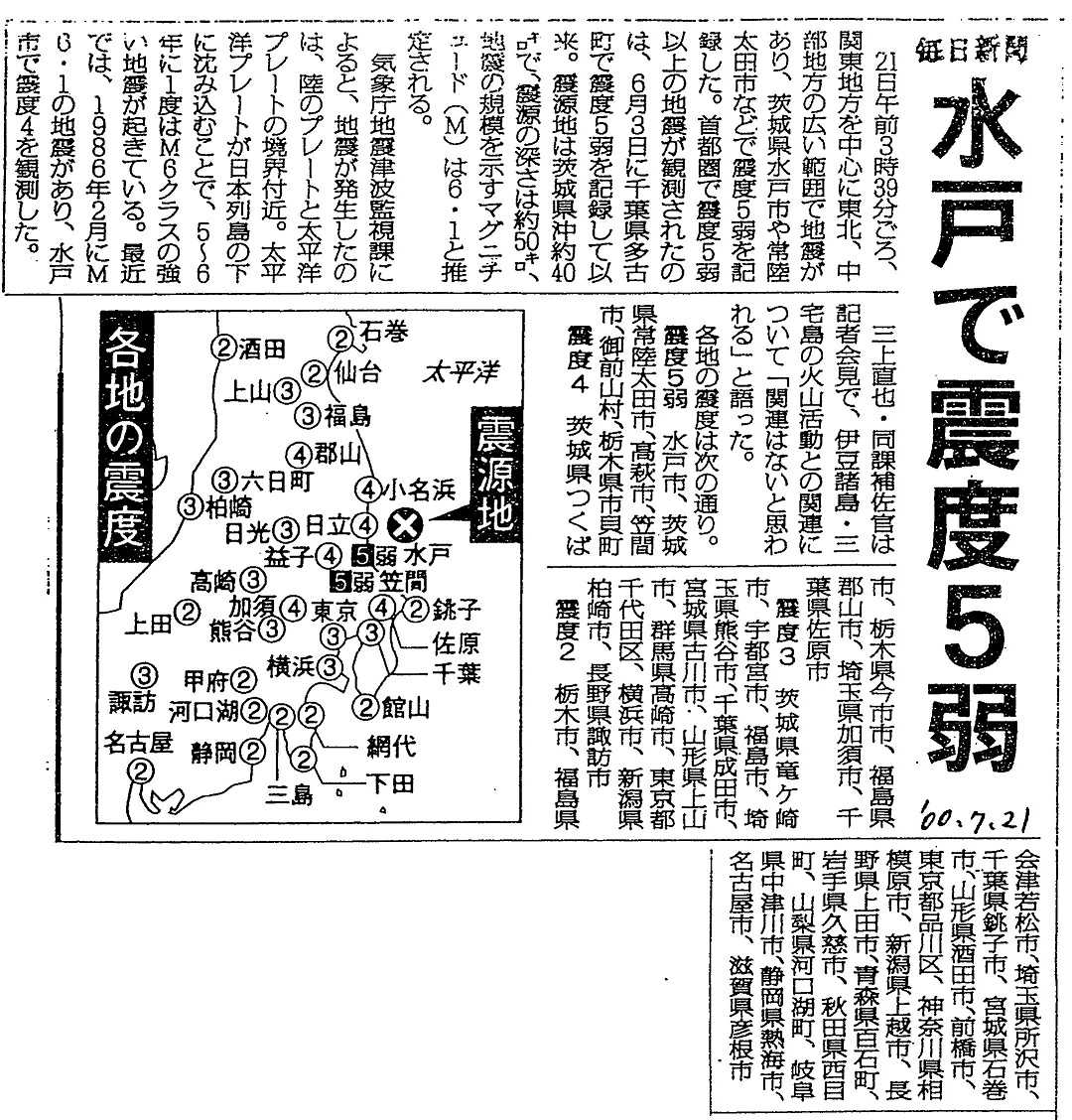 [2000_07_21_02]水戸で震度5弱(毎日新聞2000年7月21日)