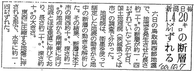 [2000_10_07_03]20キロの断層 1.4メートルずれる(新潟日報2000年10月7日)
