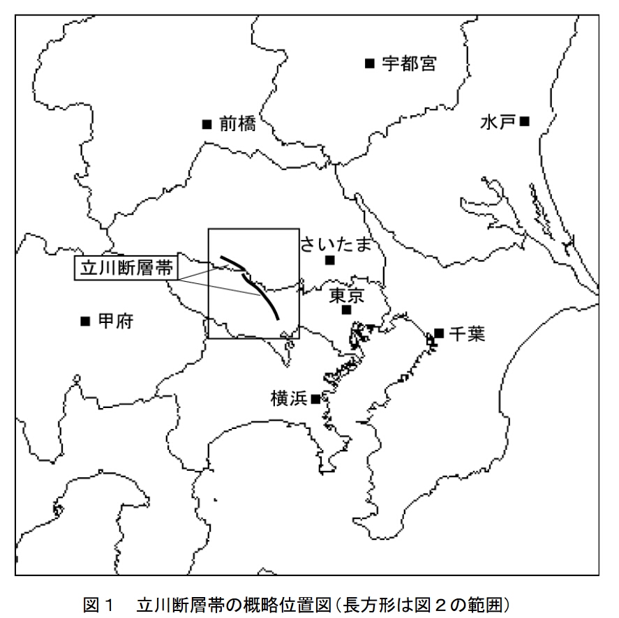 [2003_08_07_01]立川断層帯の概略位置図(関東地域の活断層の地域評価より)(地震本部2003年8月7日)
