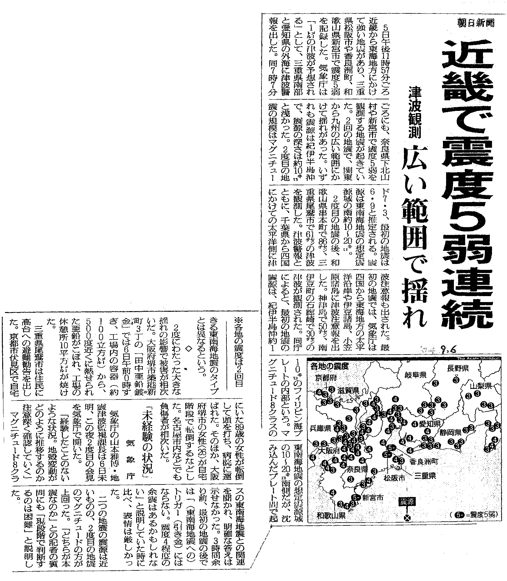 | [2004_09_06_01]近畿で震度5弱連続 津波観測 広い範囲で揺れ 「未経験の状況」気象庁(朝日新聞2004年9月6日) |