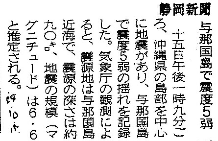 [2004_10_15_01]与那国島で震度5弱(静岡新聞2004年10月15日)