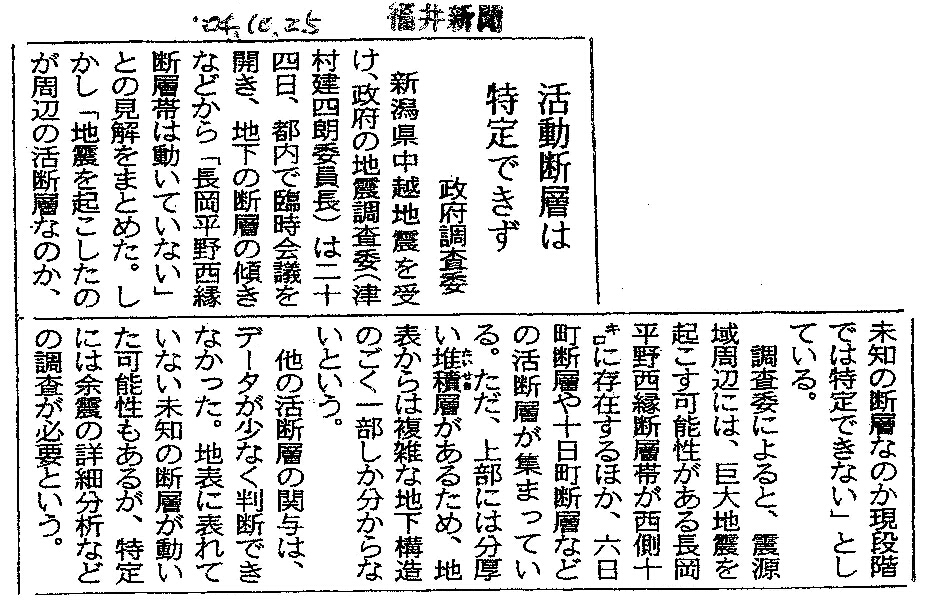 [2004_10_25_05]活動断層は特定できず 政府調査委(福井新聞2004年10月25日)