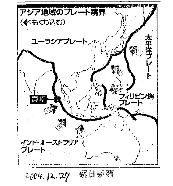 [2004_12_27_02]アジア地域のプレート境界(朝日新聞2004年12月27日)