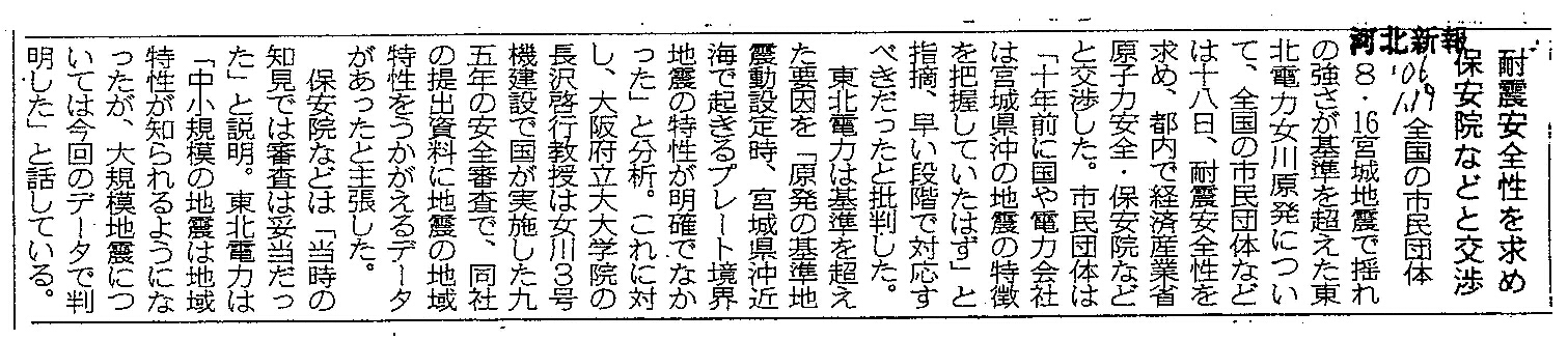 [2006_01_19_02]耐震安全性を求め 保安院などと交渉 全国の市民団体(河北新報2006年1月19日)