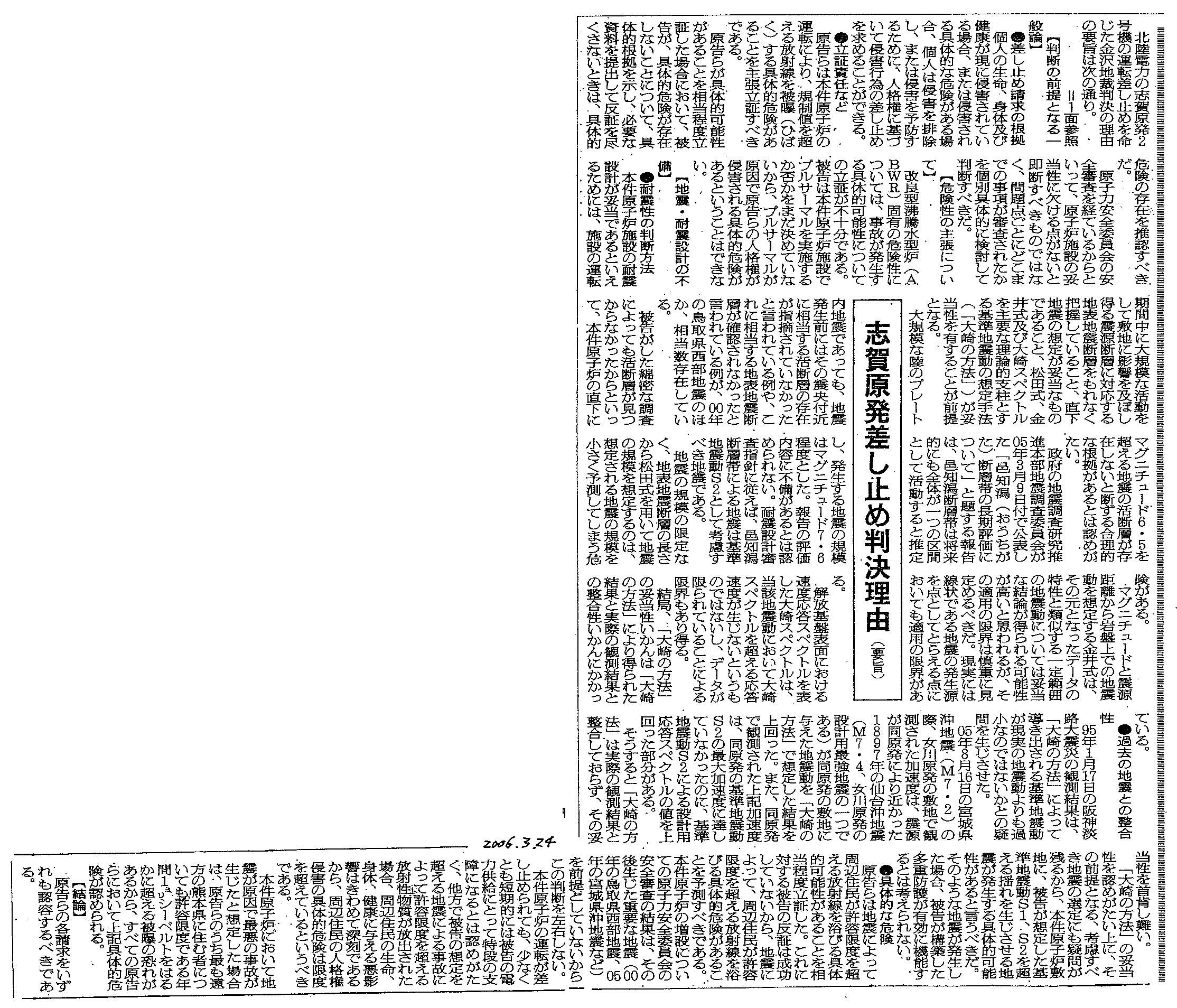 | [2006_03_24_02]志賀原発差し止め判決理由(要旨)(毎日新聞2006年3月24日) |