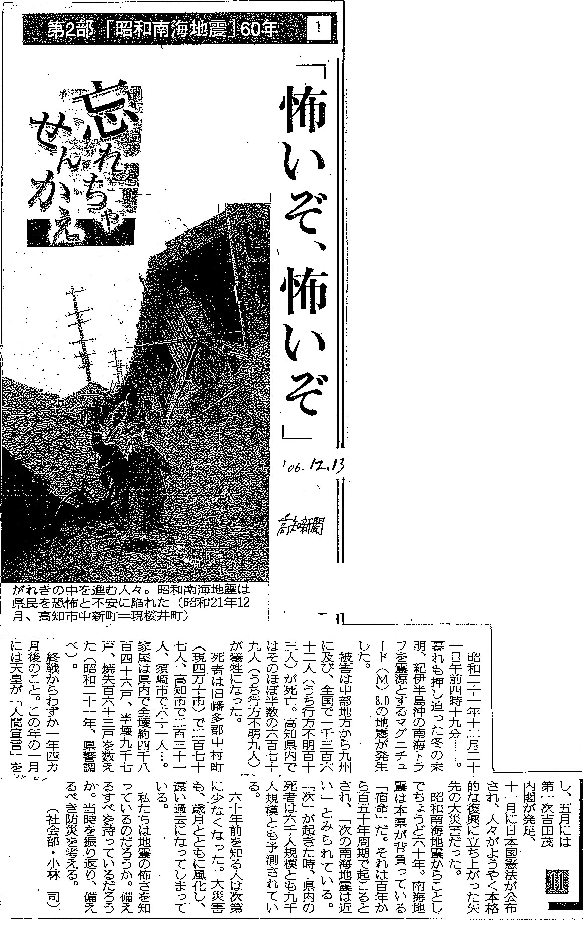 [2006_12_13_02]第2部「昭和南海地震」60年 忘れちゃせんかえ 「怖いぞ、怖いぞ」(高知新聞2006年12月13日)