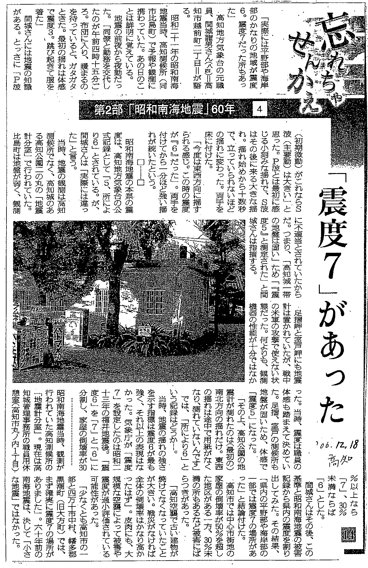 [2006_12_18_01]第2部「昭和南海地震」60年 忘れちゃせんかえ 「震度7」があった(高知新聞2006年12月18日)