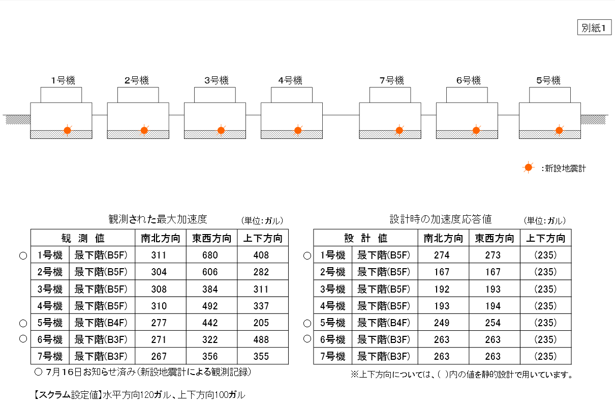 1から7号機すべての観測記録で基準地震動の加速度を超えていた