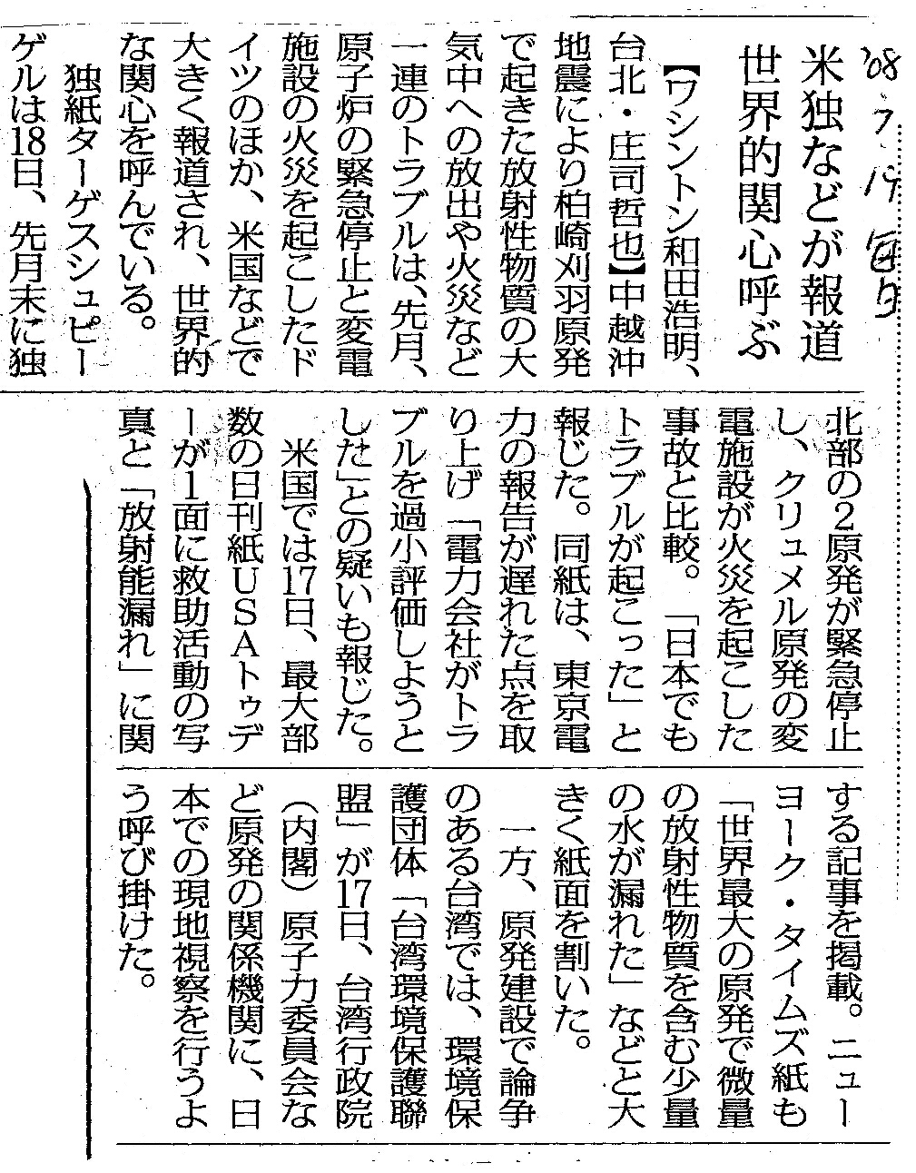 [2007_07_19_07]米独などが報道 世界的関心呼ぶ(毎日新聞2007年7月19日)