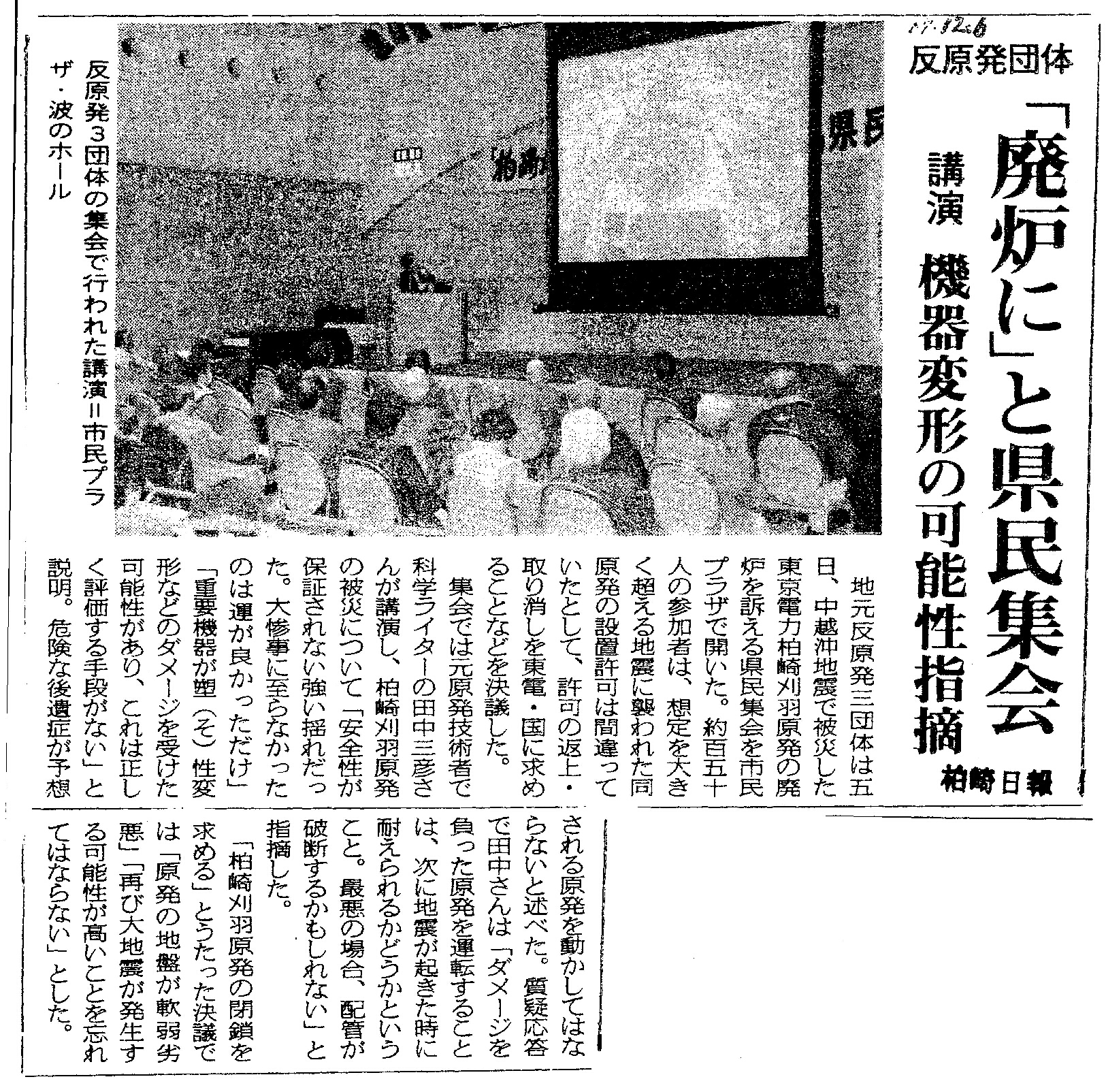 [2007_12_06_07]反原発団体 「廃炉に」と県民集会 講演 機器変形の可能性指摘(柏崎日報2007年12月6日)