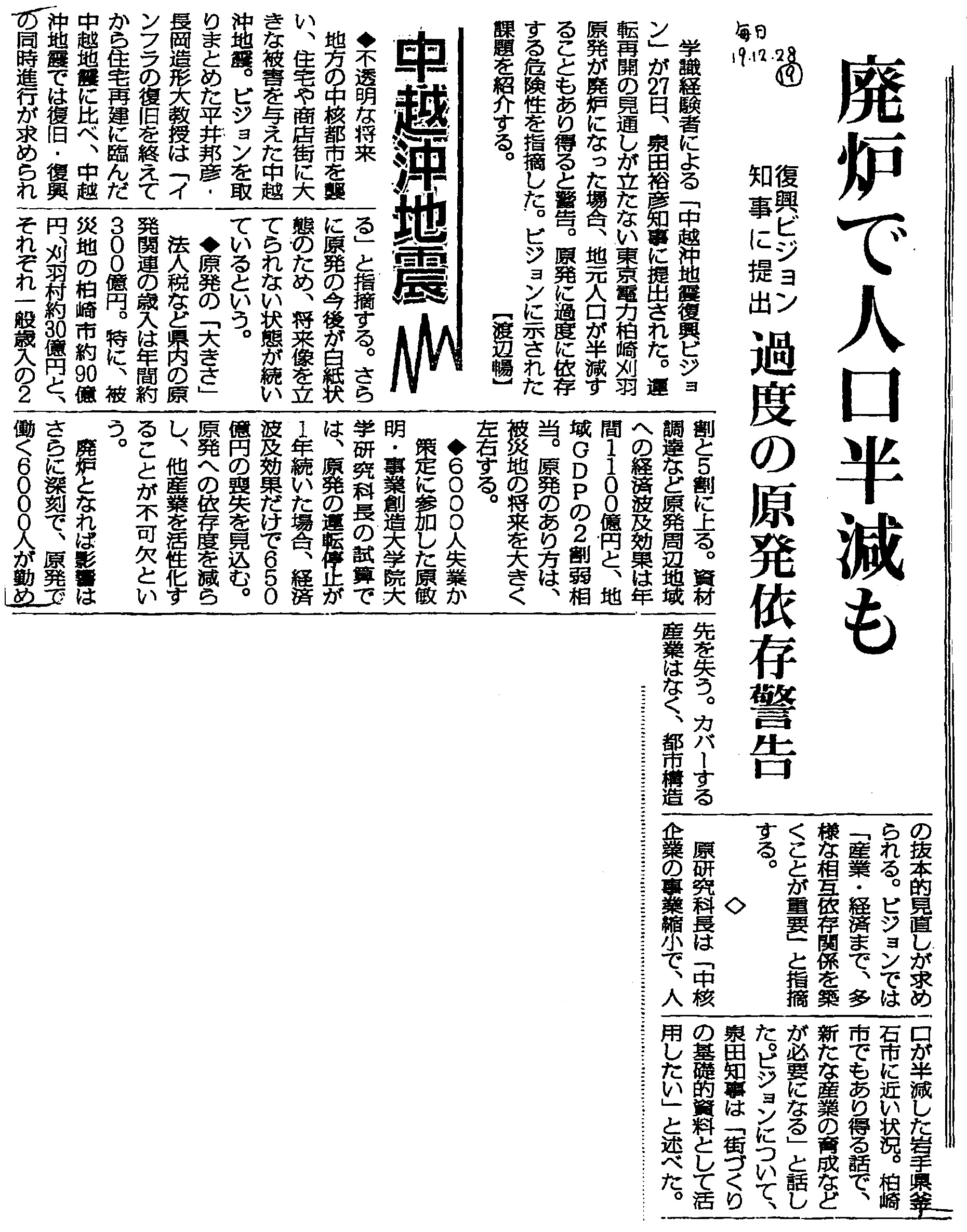 [2007_12_28_02]廃炉で人口半減も 復興ビジョン 知事に提出 過度の原発依存警告 中越沖地震(毎日新聞2007年12月28日)