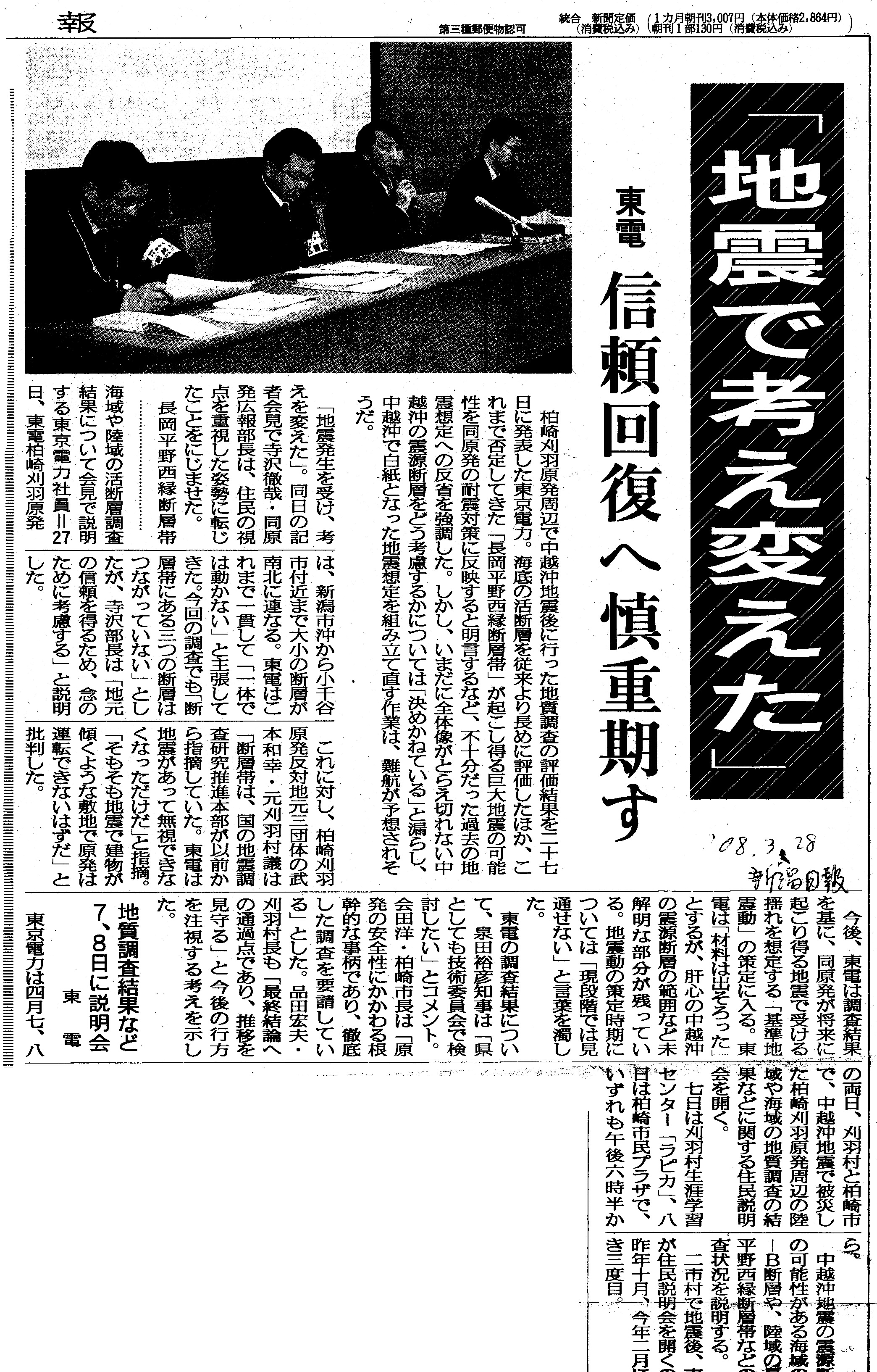 | [2008_03_28_03]「地震で考え変えた」 東電 信頼回復へ慎重期す(新潟日報2008年3月28日) |