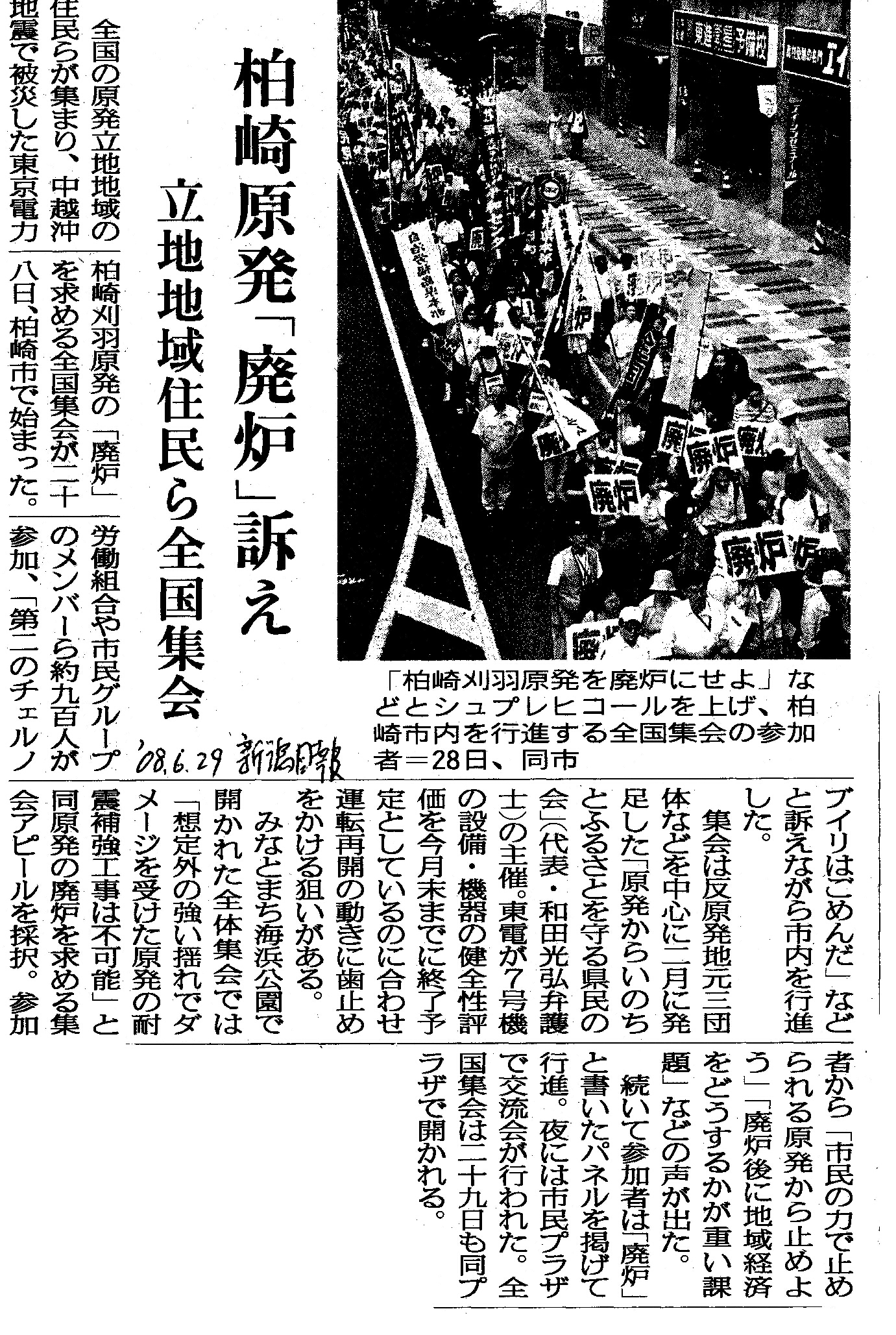 [2008_06_29_01]柏崎原発「廃炉」訴え 立地地域住民ら全国集会(新潟日報2008年6月29日)