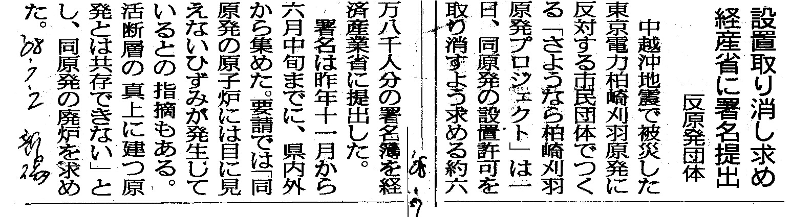 [2008_07_02_02]設置取り消し求め 経産省に署名提出 反原発団体(新潟日報2008年7月2日)