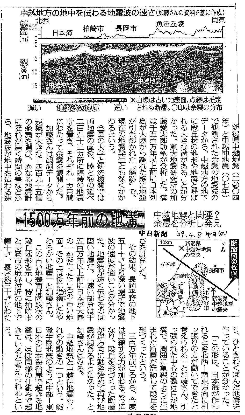 | [2009_04_08_01]1500万年前の地溝 中越地震と関連?余震を分析し発見(中日新聞2009年4月8日) |