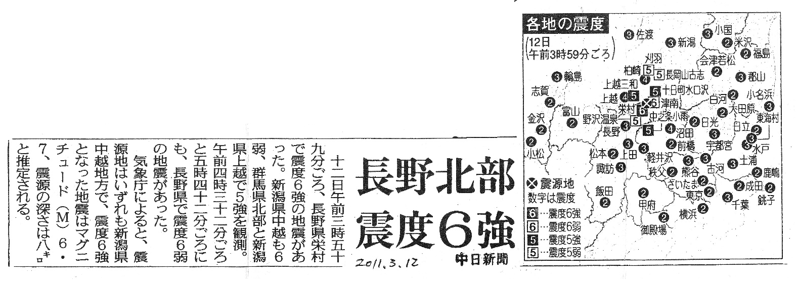 [2011_03_12_01]長野北部震度6強(中日新聞2011年3月12日)