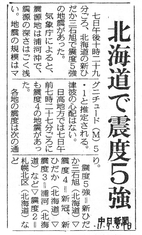[2011_09_08_02]北海道で震度5強(中日新聞2011年9月8日)