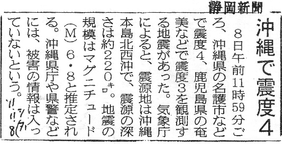[2011_11_08_03]沖縄で震度4(静岡新聞2011年11月8日)