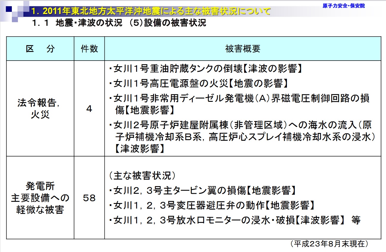 | [2011_09_30_05]地震・津波1-3-2_平成23年(2011年)東北地方太平洋沖地震及びそれに伴い発生した津波による原子力発電所における被害状況について(東北電力鰹乱原子力発電所)(原子力安全・保安院2011年9月30日) |