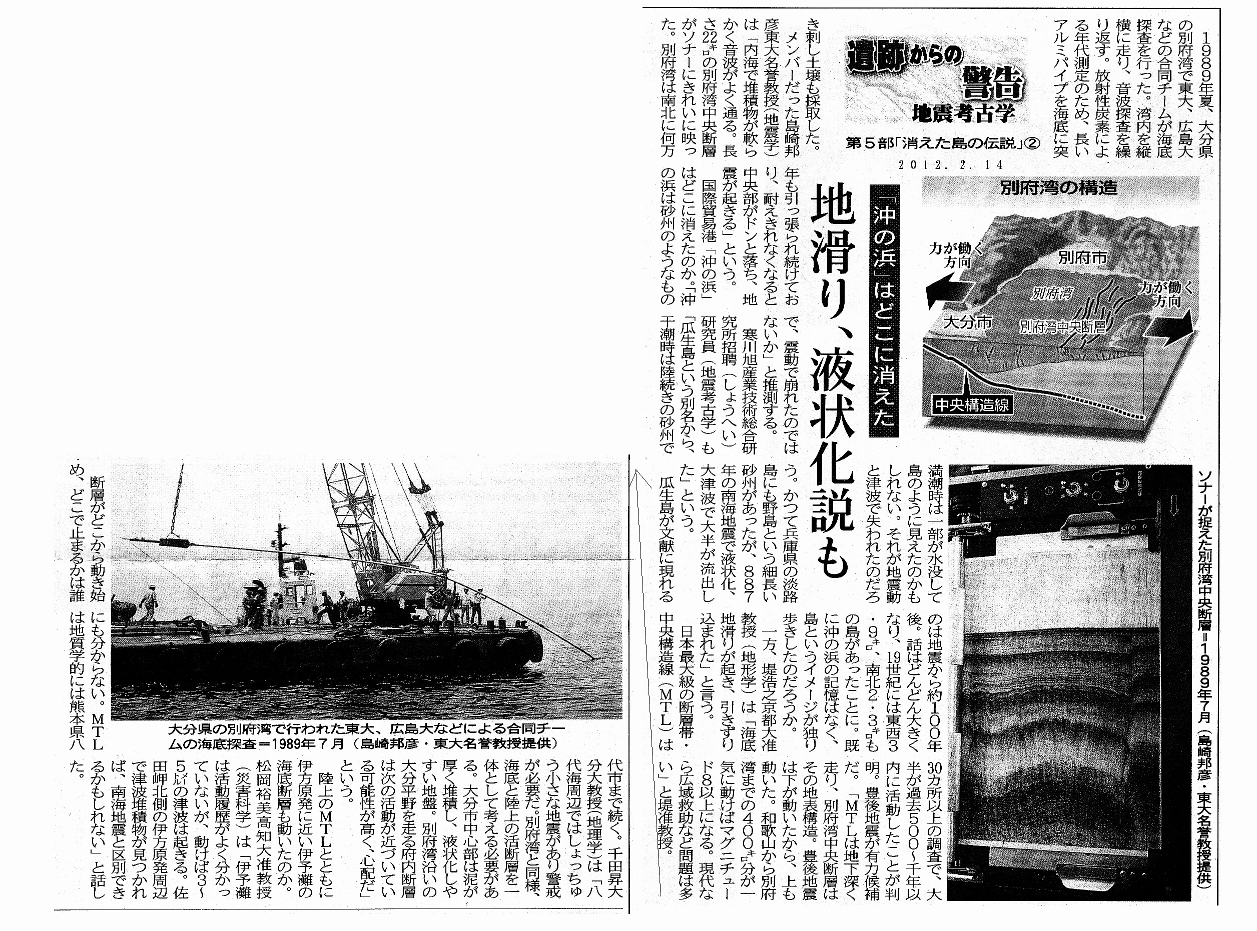[2012_02_14_01]遺跡からの警告 地震考古学 第5部 「消えた島の伝説」2 「沖の浜」はどこに消えた 地滑り、液状化説も(東奥日報2012年2月14日)