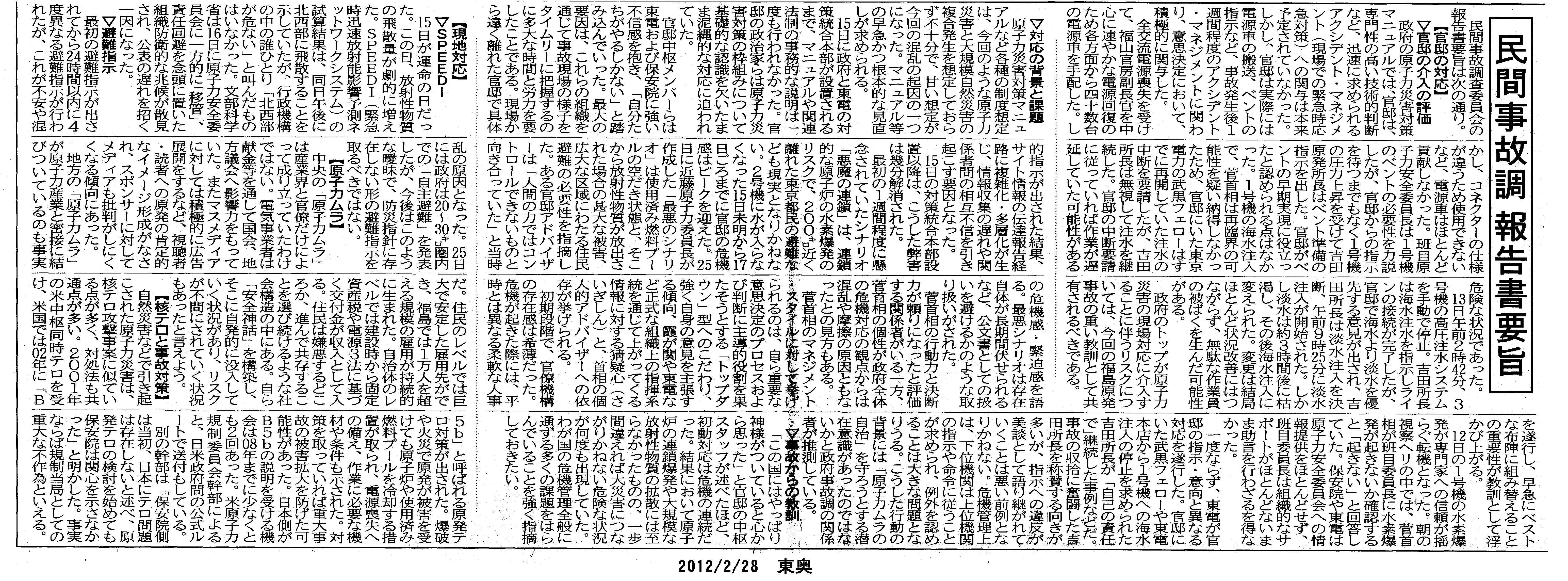 [2012_02_28_05]民間事故調 報告書要旨(東奥日報2012年2月28日)