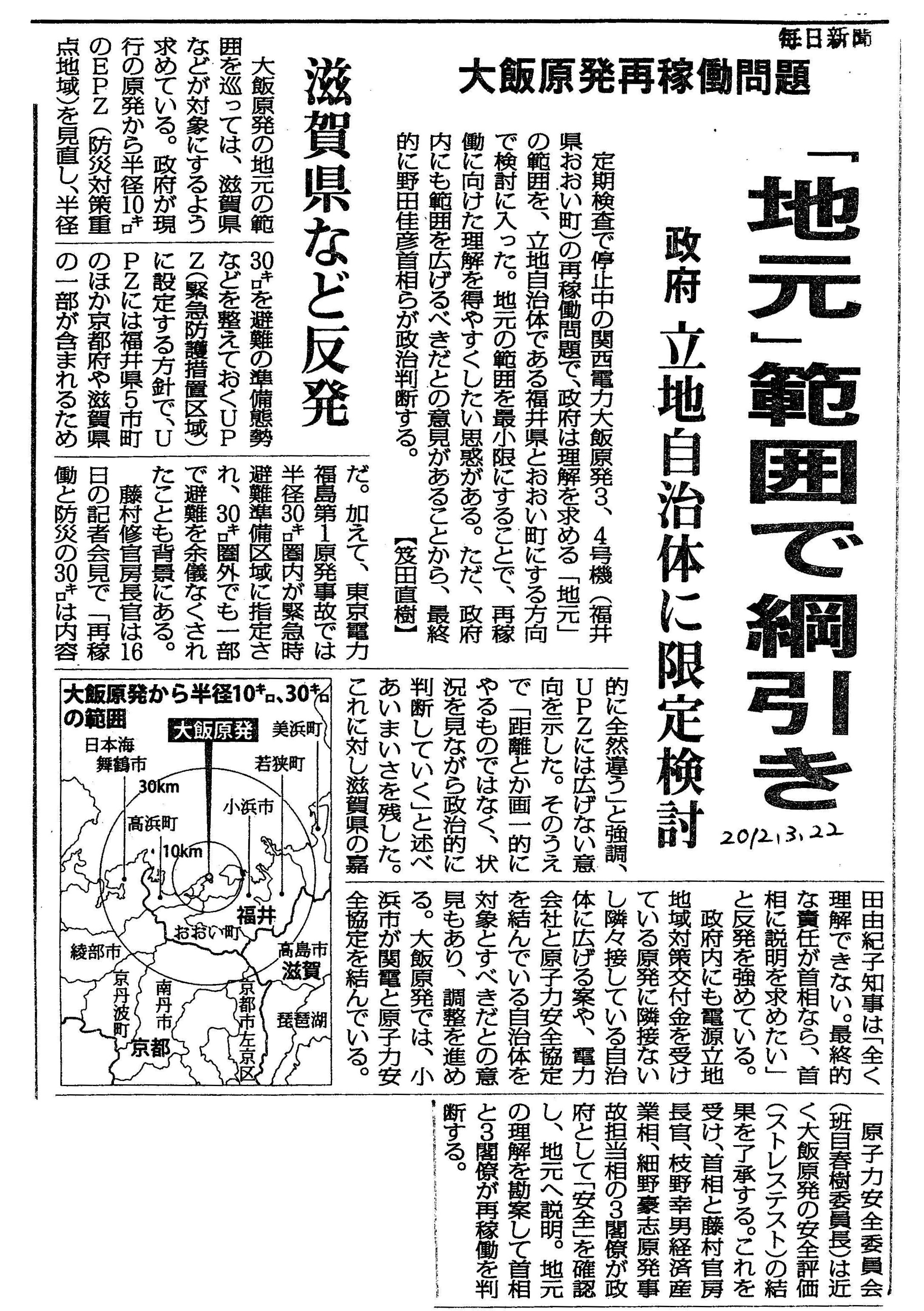 [2012_03_22_01]大飯再稼働問題 「地元」範囲で綱引き 滋賀県など反発 (毎日新聞2012年3月22日)
