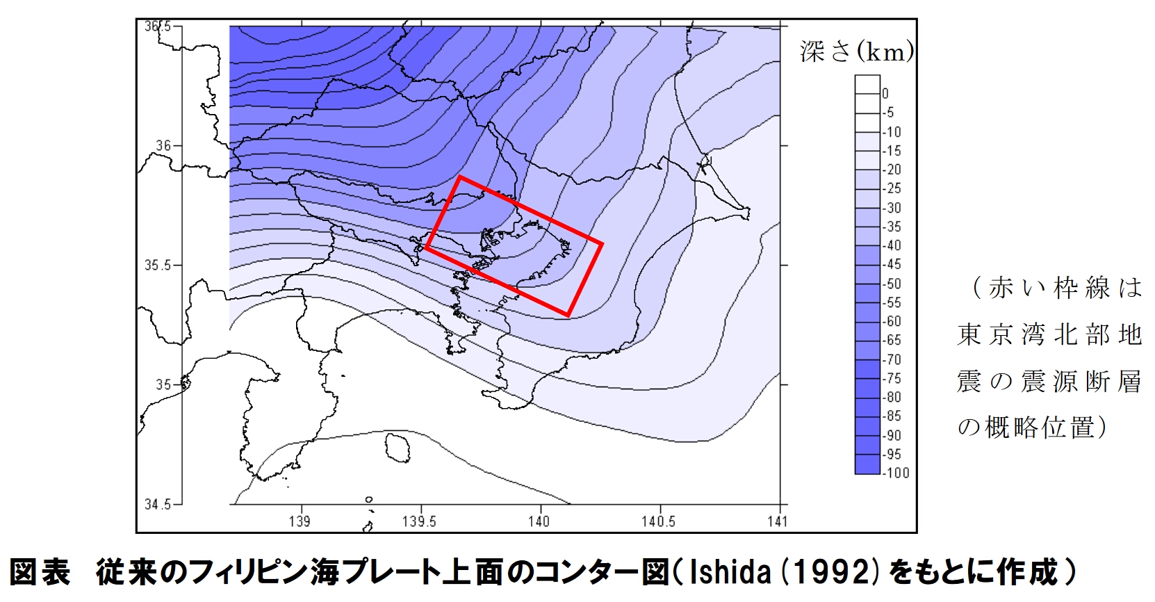 [2012_05_11_02]図表 従来のフィリピン海プレート上面のコンター図((Ishida(1992))をもとに作成)(東京都防災ホームページ2012年5月11日)