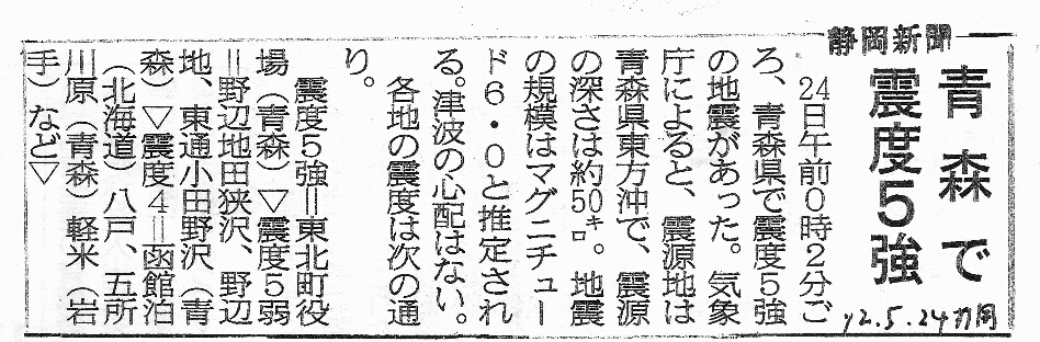 [2012_05_24_01]青森で震度5強(静岡新聞2012年5月24日)