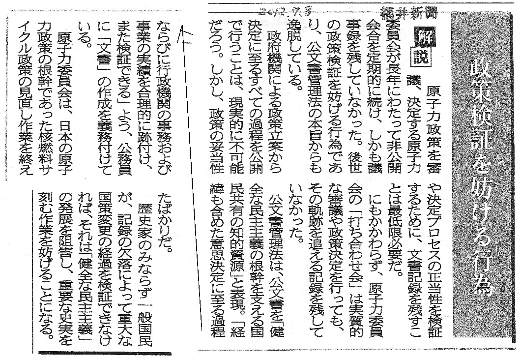 KEY_WORD:原子力委員会:公文書管理法:核燃料サイクル政策の見直し:非公開会合: