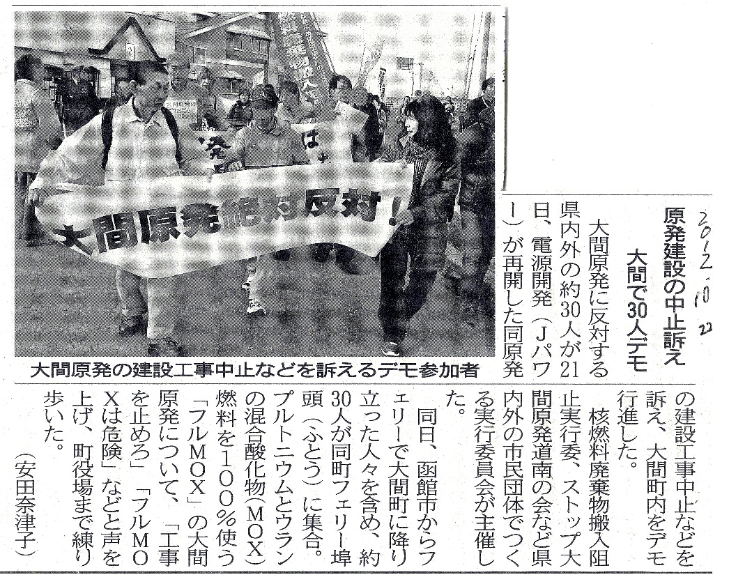 | [2012_10_22_04]原発中止訴え 大間で30人でも(東奥日報2012年10月22日) |