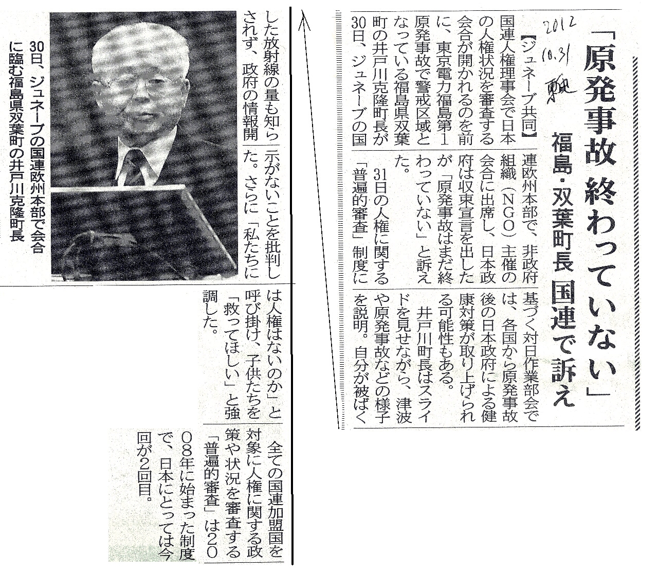 KEY_WORD:FUKU1_:国連人権理事会:福島県双葉町の井戸川克隆町長:ジュネーブ:収束宣言: