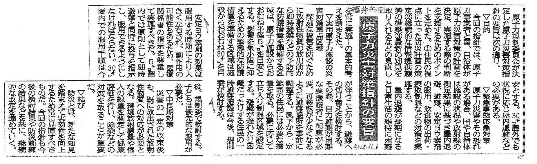 [2012_11_01_03]原子力災害対策指針の要旨(福井新聞2012年11月1日)