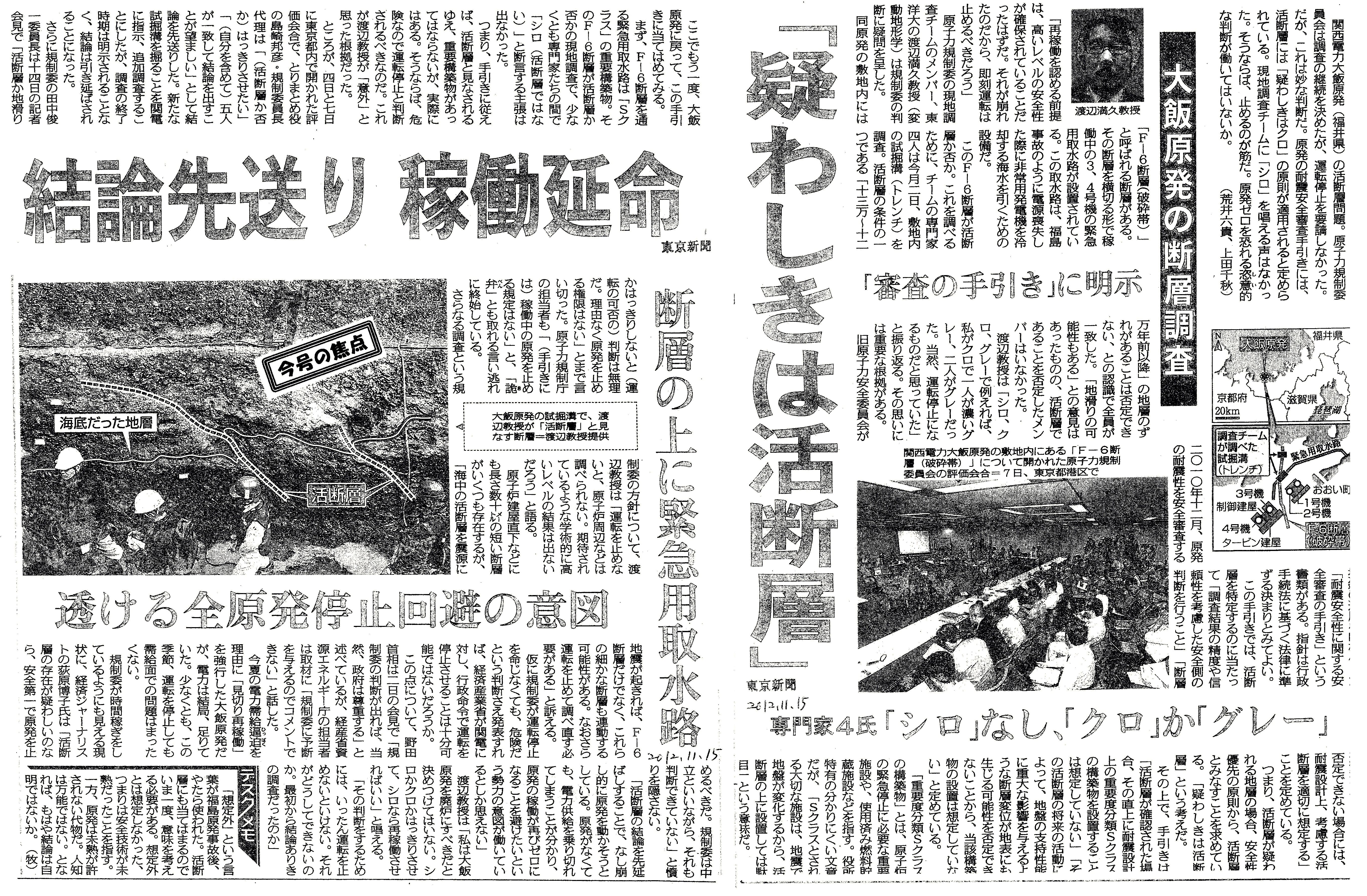 | [2012_11_15_01]大飯原発の断層調査 「疑わしきは活断層」 「審査の手引き」に明示(東京新聞2012年11月15日) |