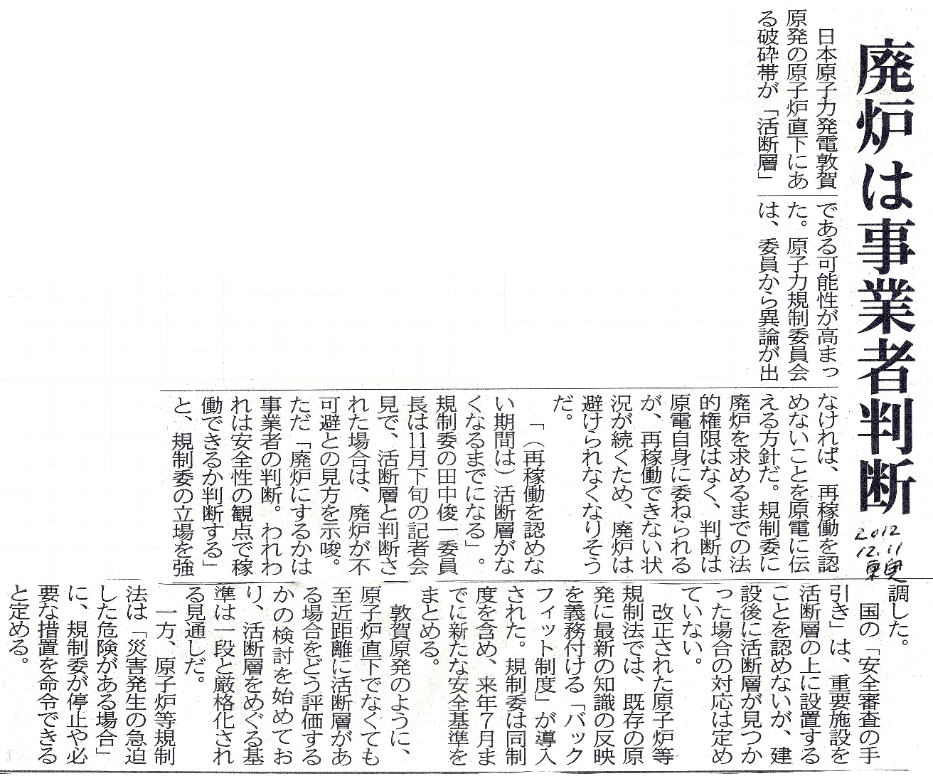 | [2012_12_11_01]廃炉は事業者判断(東奥日報2012年12月11日) |