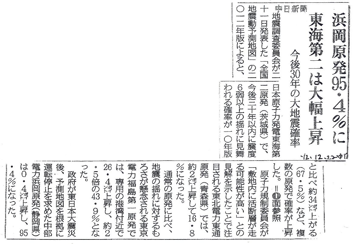 | [2012_12_22_02]浜岡原発95.4%に 東海第二は大幅上昇 今後30年の大地震確率(中日新聞2012年12月22日) |