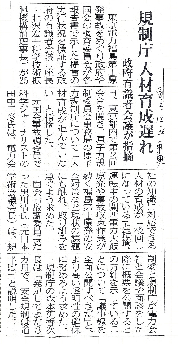 [2012_12_26_02]規制庁 人材育成遅れ 政府有識者会議が指摘(東奥日報2012年12月26日)