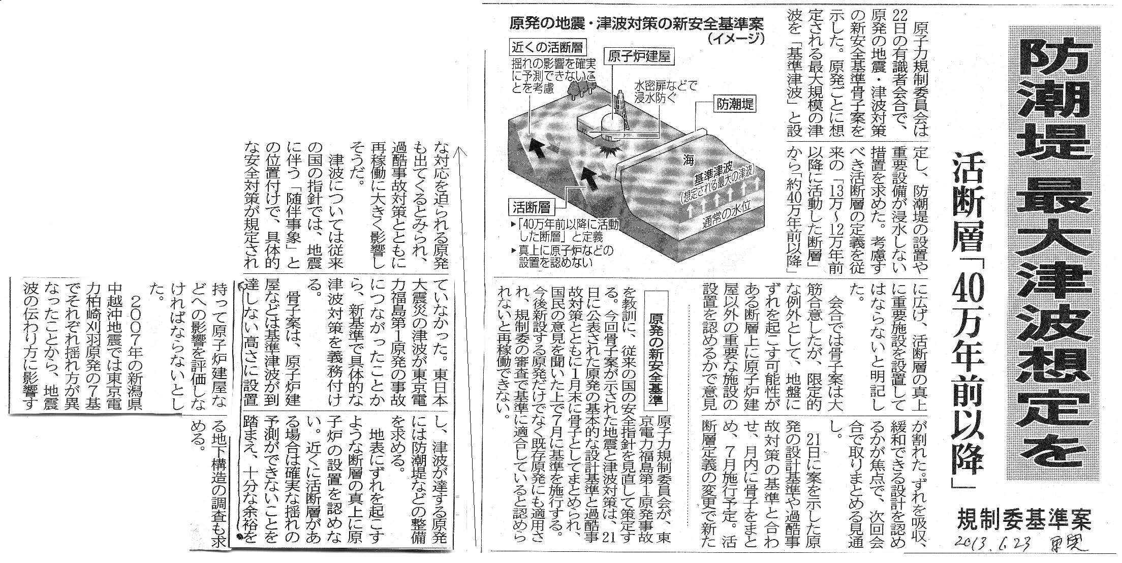 | [2013_01_23_01]防潮堤 最大津波想定を 活断層「40万年前以降」 規制委基準案(東奥日報2013年1月23日) |