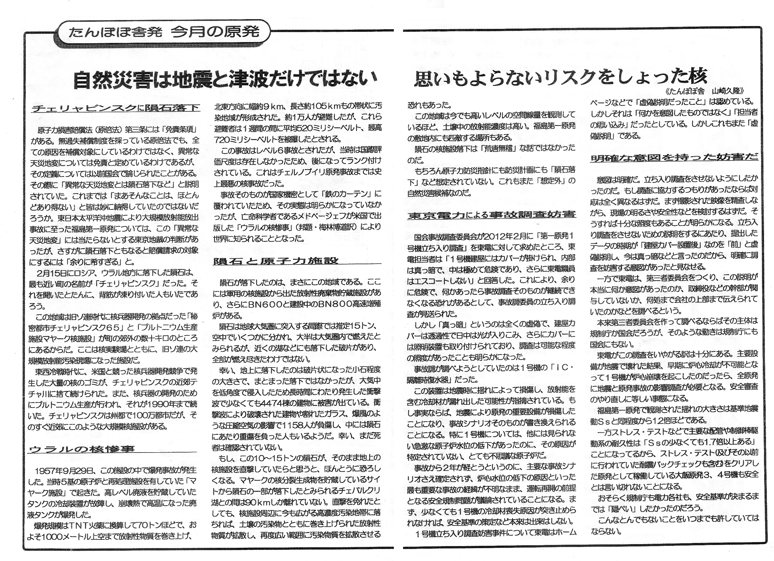 [2013_02_01_02]自然災害は地震と津波だけではない 思いもよらないリスクをしょった核(よせあつめ新聞2013年2月1日)