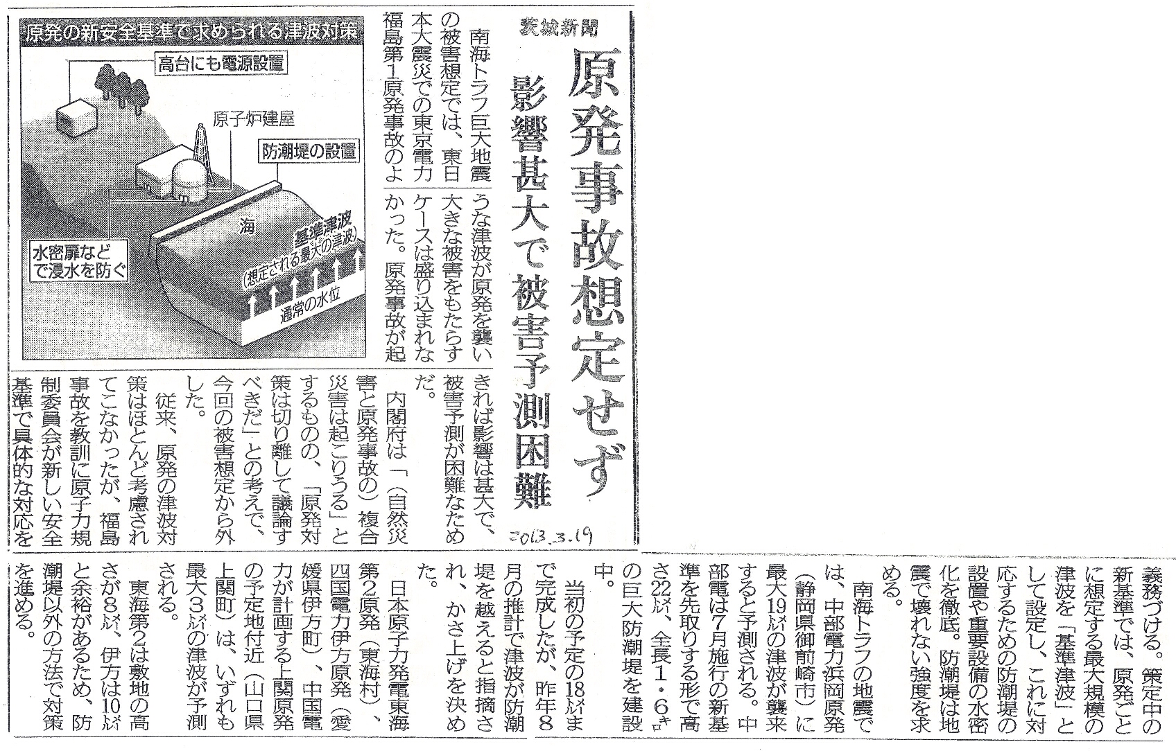 | [2013_03_19_02]原発事故想定せず 影響甚大で被害予測困難(茨城新聞2013年3月19日) |