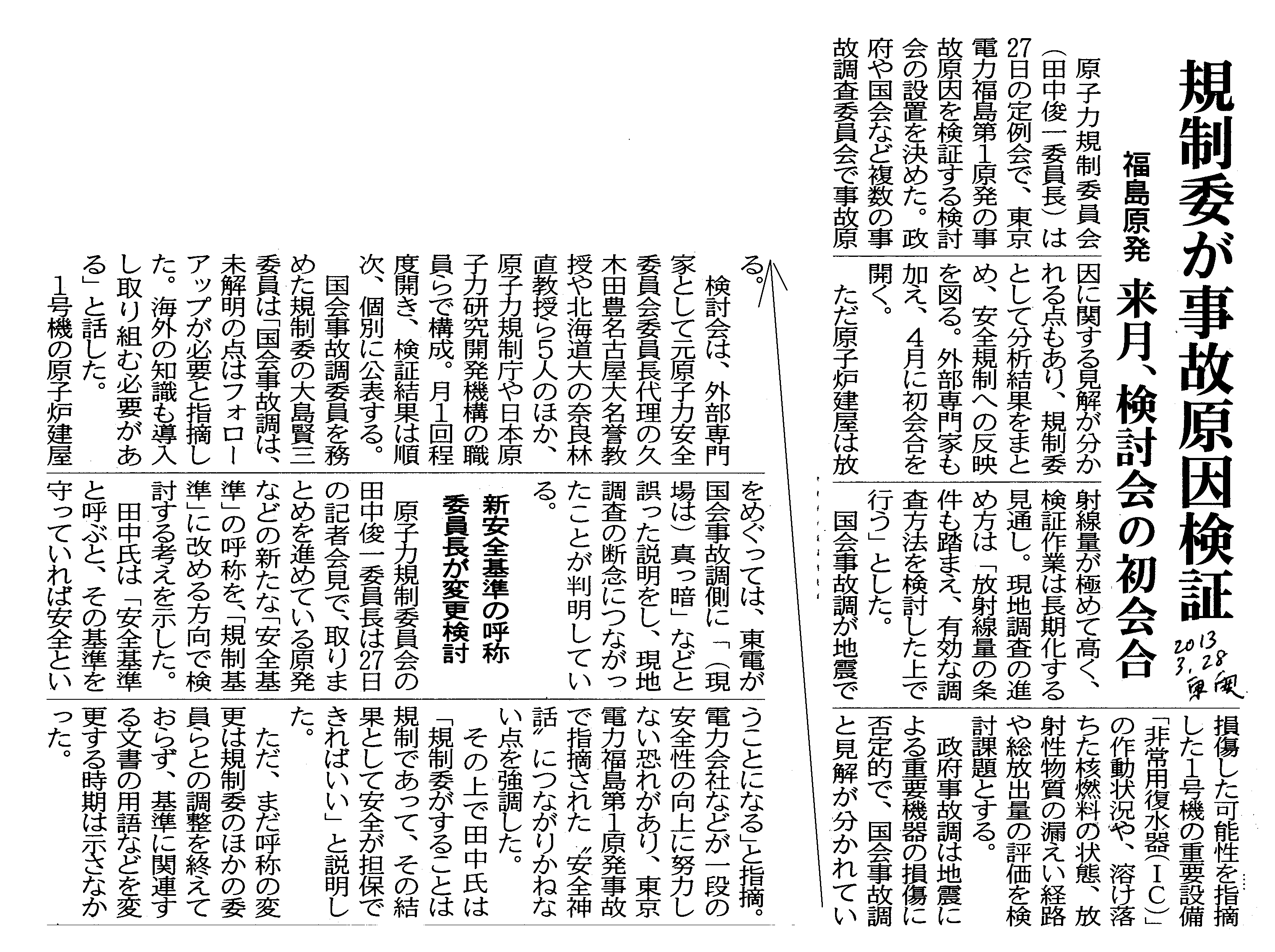 [2013_03_28_01]規制委が事故原因検証(東奥日報2013年3月28日)